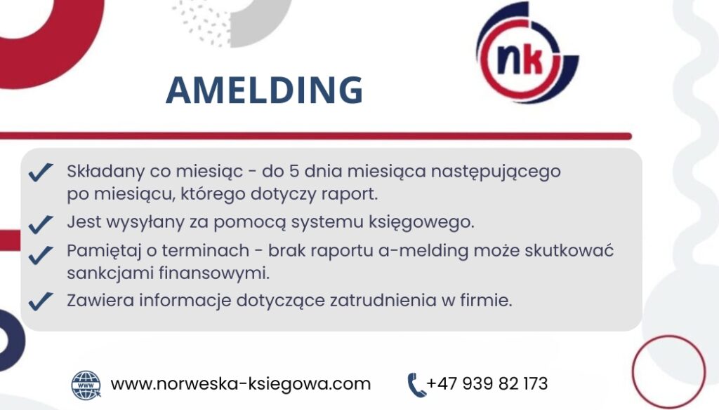 A-melding to kluczowe pojęcie w norweskim systemie podatkowym i ubezpieczeń społecznych. Raport ten stanowi obowiązek firm działających w Norwegii, które są zobowiązane regularnie dostarczać te informacje do Norweskiego Urzędu Skarbowego (Skatteetaten) w określonych terminach.