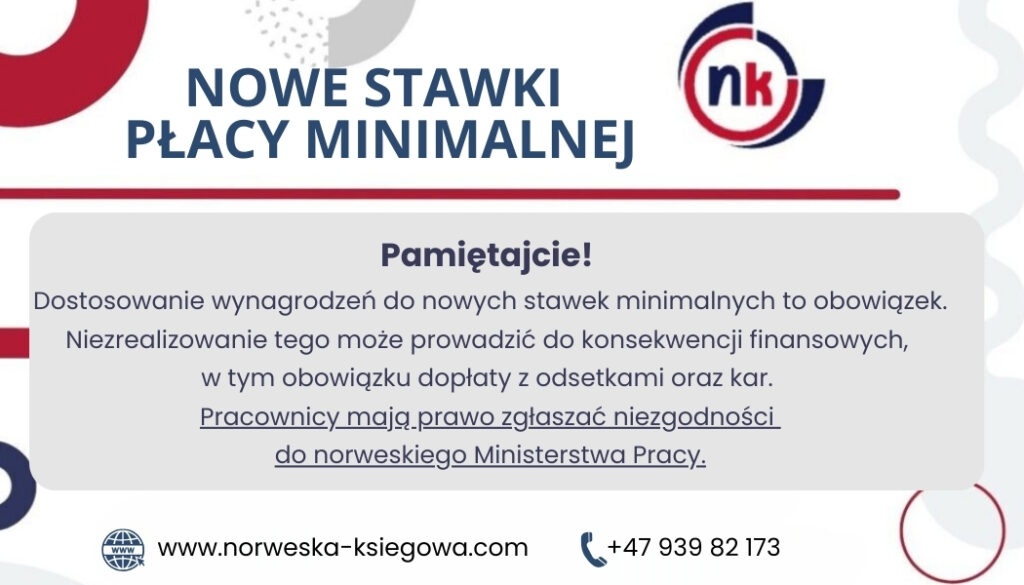 Pracodawcy, pamiętajcie! Dostosowanie wynagrodzeń do nowych stawek minimalnych to obowiązek. Niezrealizowanie tego może prowadzić do konsekwencji finansowych, w tym obowiązku dopłaty z odsetkami oraz kar. Pracownicy mają prawo zgłaszać niezgodności do norweskiego Ministerstwa Pracy.