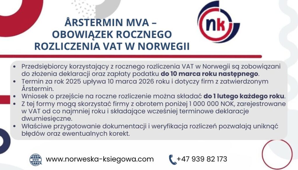 Årstermin MVA – obowiązek rocznego rozliczenia VAT w Norwegii