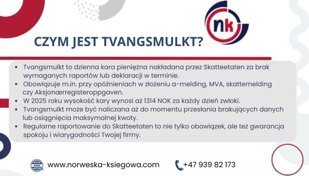 | OTP (obowiązkowy plan emerytalny) | 250 NOK na pracownika / dzień | Kara trwa do momentu udokumentowania utworzenia planu |