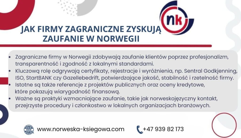 Zagraniczna firma może być w Norwegii postrzegana równie dobrze – a często lepiej – niż lokalne przedsiębiorstwa, jeśli zadba o odpowiednie certyfikaty, transparentność i profesjonalną komunikację.