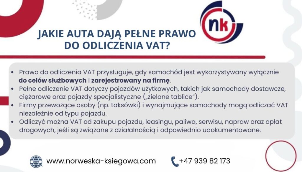| Podsumowanie | – Znajomość szczegółowych zasad odliczania VAT pozwala na prawidłowe rozliczenie kosztów i optymalizację finansów firmy. – Kluczowe jest właściwe rozróżnienie rodzaju pojazdu i prowadzenie dokładnej dokumentacji. – W razie wątpliwości warto skonsultować się z biurem rachunkowym, np. TOPNOR REGNSKAP AS, aby uniknąć błędów i kosztownych konsekwencji. |