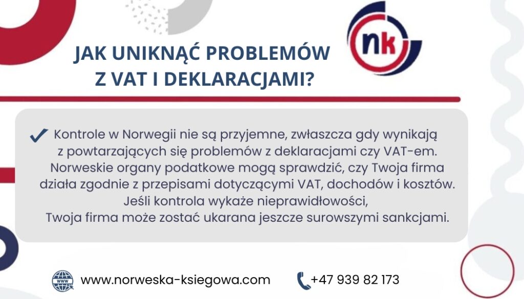 Kontrole w Norwegii nie są przyjemne, zwłaszcza gdy wynikają z powtarzających się problemów z deklaracjami czy VAT-em. Norweskie organy podatkowe mogą sprawdzić, czy Twoja firma działa zgodnie z przepisami dotyczącymi VAT, dochodów i kosztów.