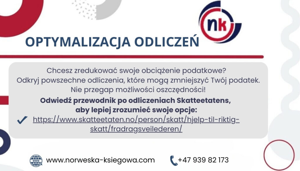 Zanurz się głębiej w swoje możliwości podatkowe – odwiedź przewodnik po odliczeniach Skatteetatens, aby lepiej zrozumieć swoje opcje: