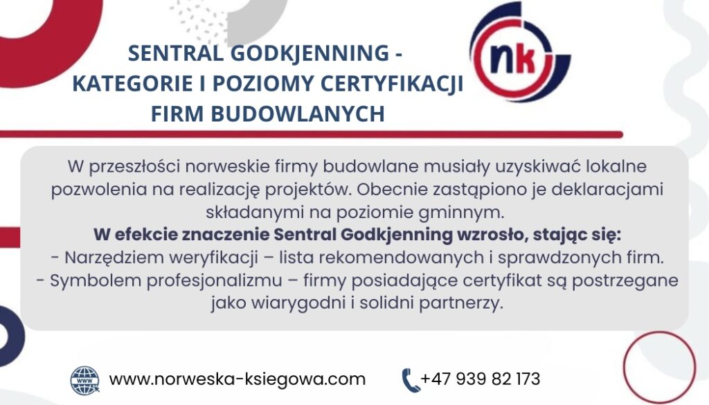 Zwiększa zaufanie klientów – certyfikat świadczy o profesjonalizmie i zgodności z norweskimi standardami.