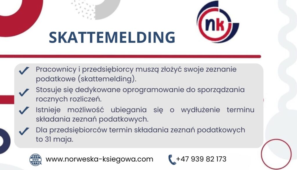 To wstępne rozliczenie, czyli Skattemelding, stanowi podstawę do sprawdzenia poprawności danych przez podatnika. Kolejnym etapem jest dokonanie rocznego rozliczenia firmy.