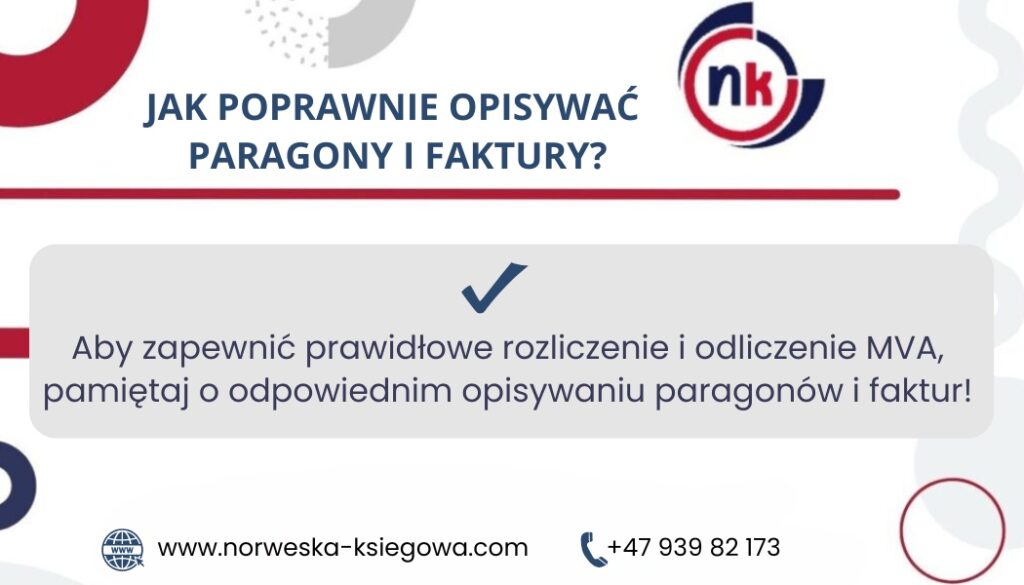 Jak poprawnie opisywać paragony i faktury? Aby zapewnić prawidłowe rozliczenie i odliczenie MVA, pamiętaj o odpowiednim opisywaniu paragonów i faktur w poniższych sytuacjach: